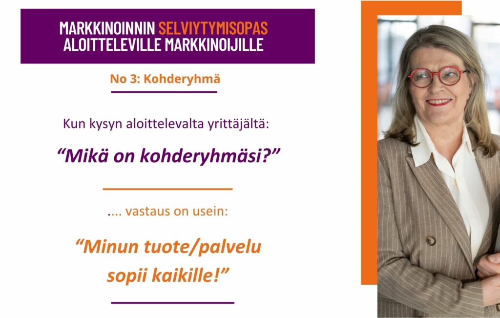 Kun aloittavilta yrittäjiltä kysyy kenelle he suunnittelevat myyvänsä palvelua tai tuotetta, vastaus on usein: ”Minun tuote/palvelu sopii kaikille”. Ja kun jatkamme keskustelua, niin selviää että…
