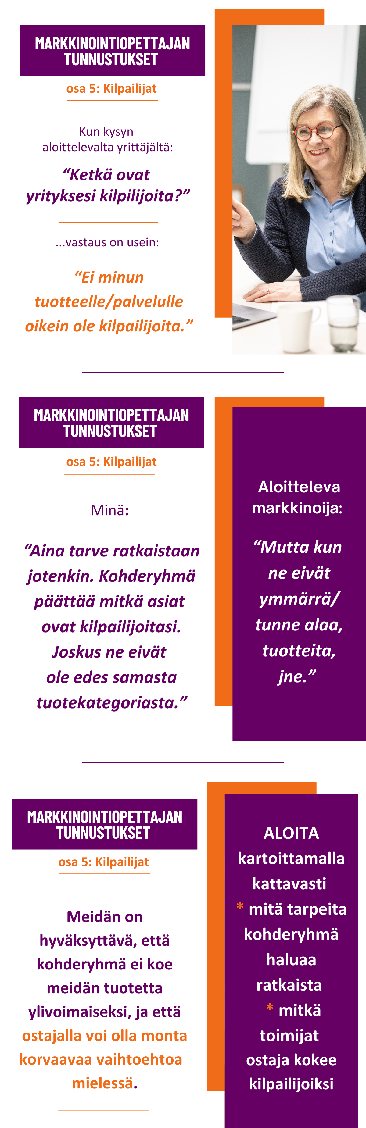- mitä tarpeita kohderyhmä pyrkii ratkaisemaan – Katso blogi-postaus Kohderyhmän ymmärtämisestä